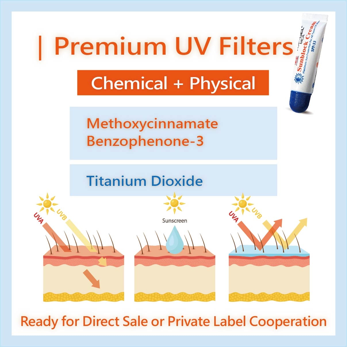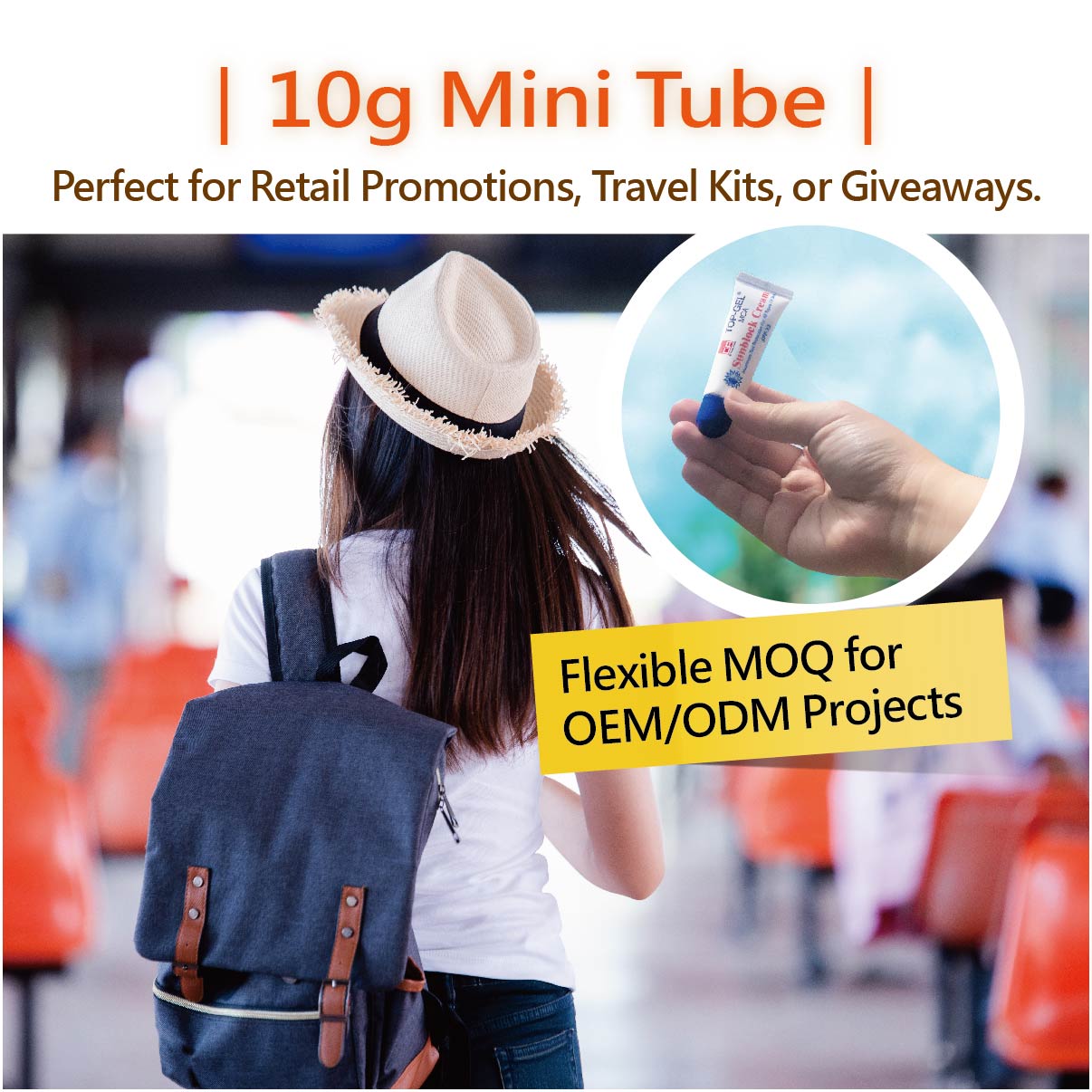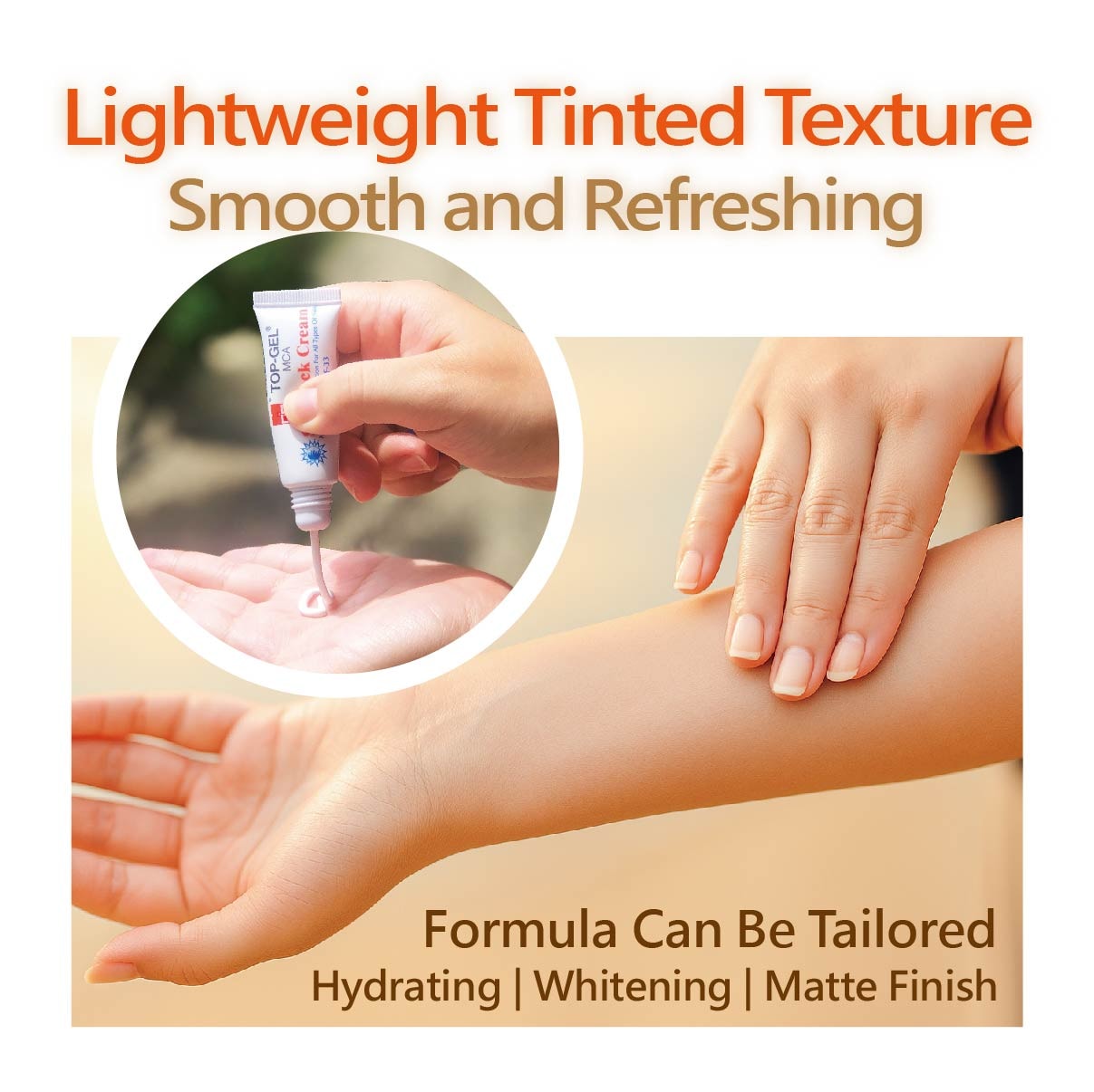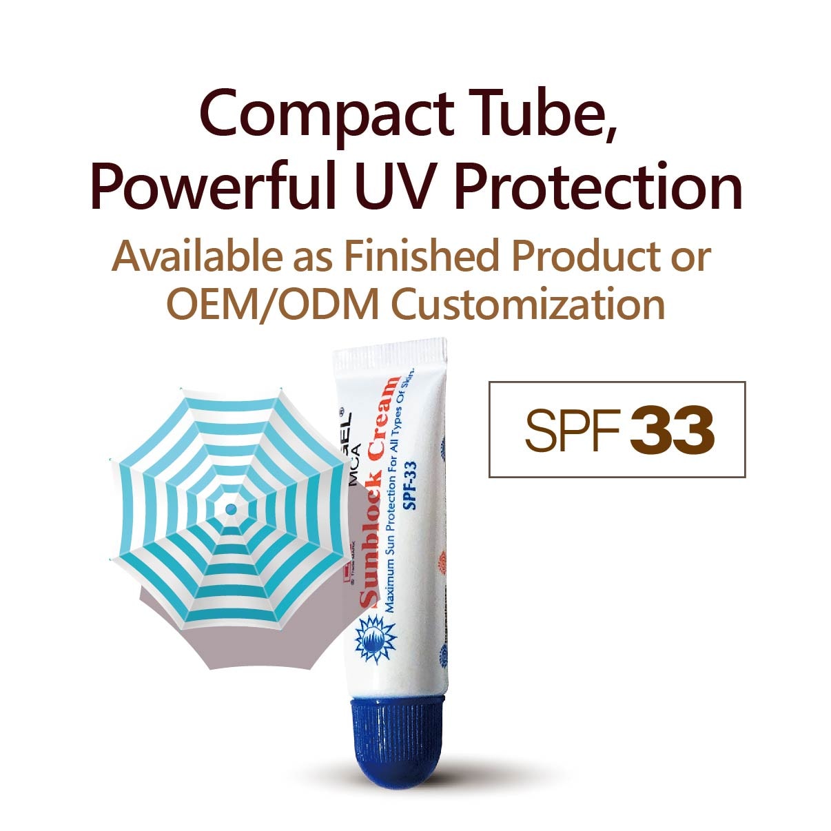 TOP-WELL COSMETICS propose une crème solaire OEM prête à la vente dans un mini tube compact de 10g avec protection SPF33, idéale pour les routines quotidiennes de soins de la peau et les activités en plein air. Sa texture légère teintée s’étale facilement, offrant protection UV, résistance à l’eau et à la transpiration, et une finition lisse sans effet collant.
