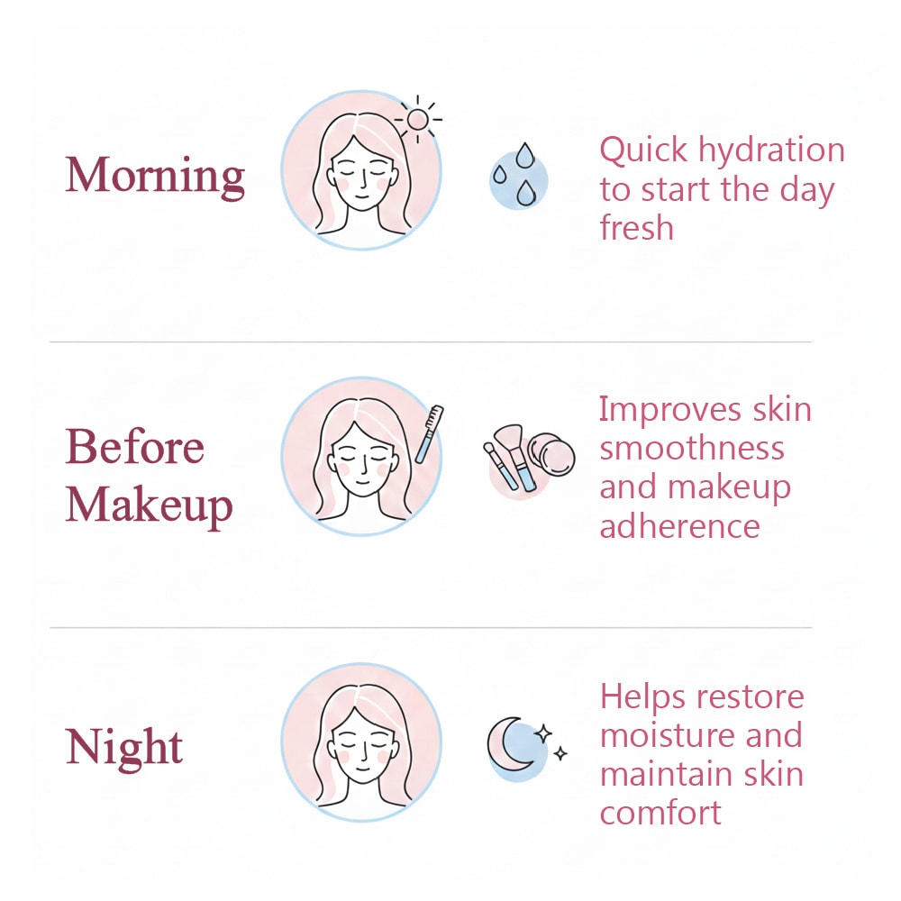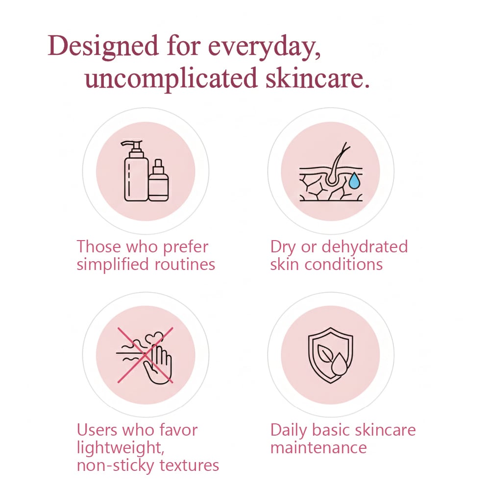 Convient à tous les types de peau, en particulier aux peaux sèches ou déshydratées