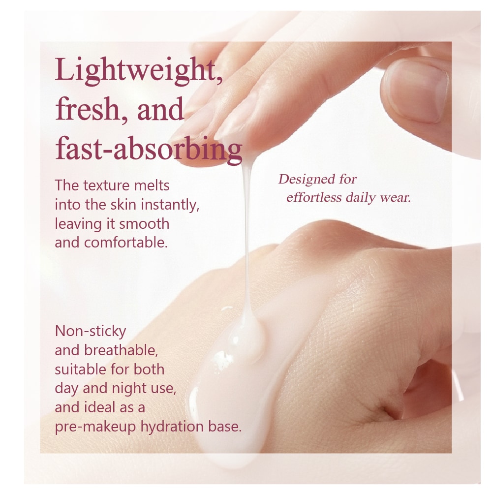 Texture légère, adaptée au jour et à la nuit, idéale également comme base hydratante avant le maquillage